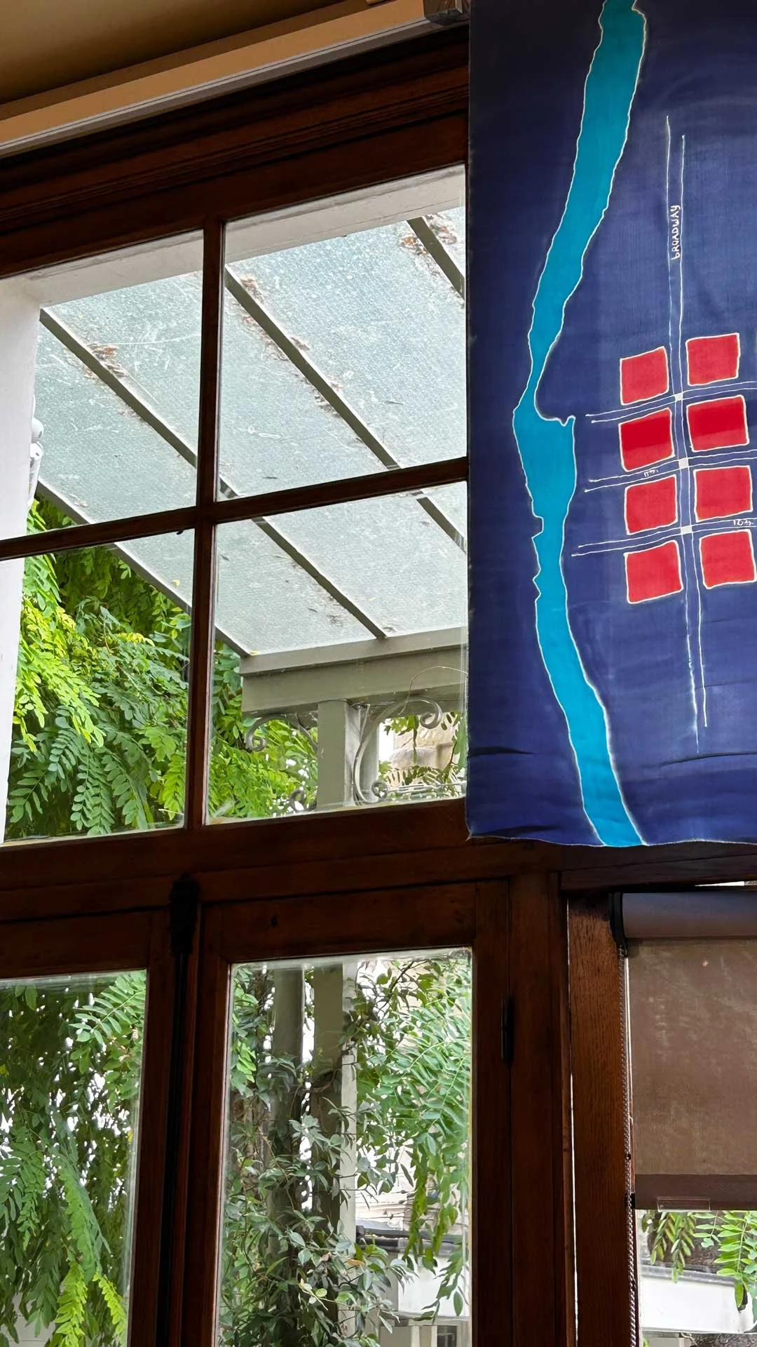 My dear friend Christina Chirouze Montenegro contacted me about a month ago to mount an exhibition at the Columbia University Global Studies Center. In the charming 6th arrondissement, tucked between Boulevard de Montparnasse and rue Notre-Dame des Champs, is nestled La Caféothèque Reid Hall. La Caféothèque was chosen to bring their expertise to the Global Studies Center as a result of their long-time relationship in building connections between cultures, "a high-quality café promoting humanitarian principles." There, in this prestigious center of learning, my large-scale art hangs fluttering in the breeze; inviting the students and faculty to study and discourse under the protection of my paintings.